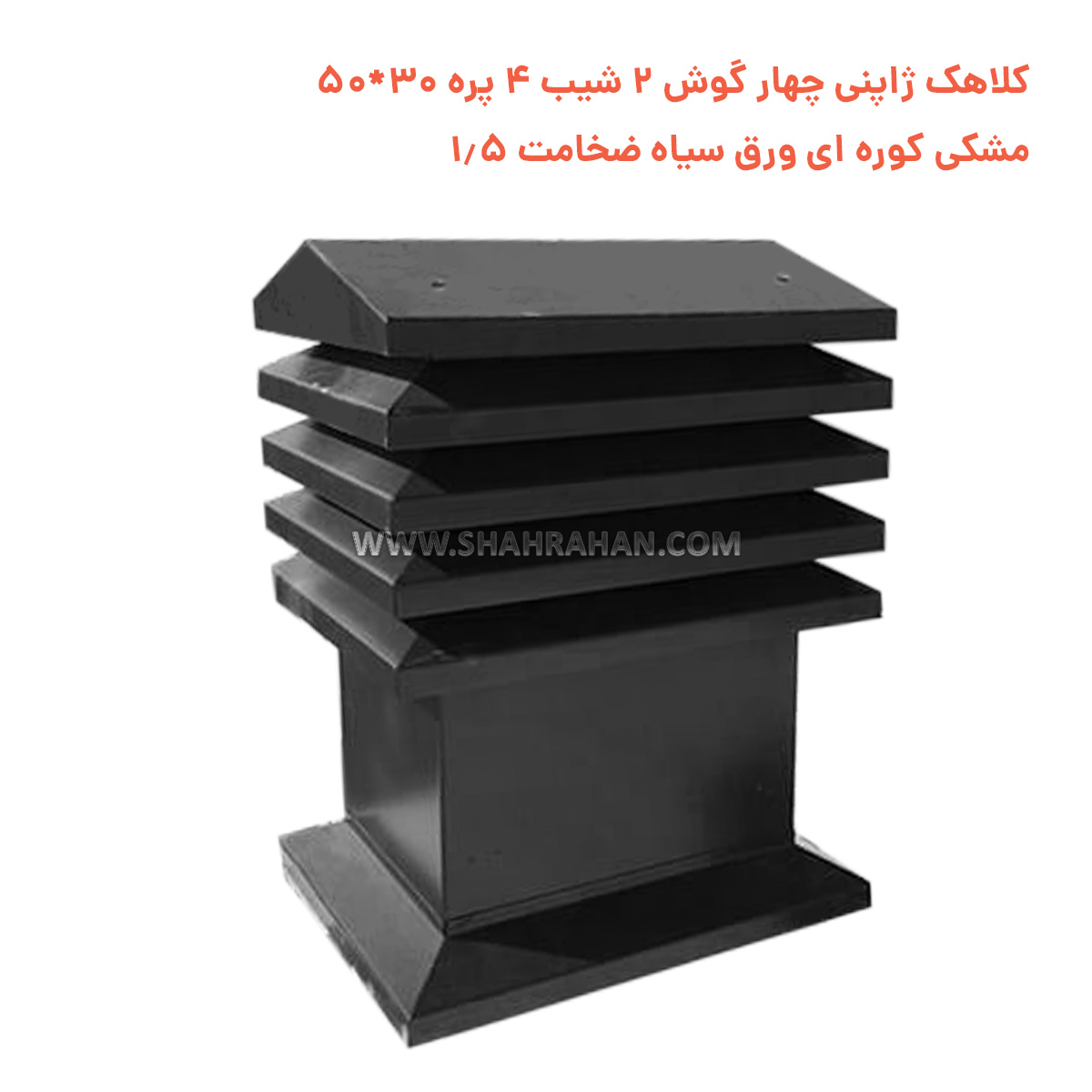 مشخصات کلاهک ژاپنی چهار گوش 2 شیب 4 پره 30*50 مشکی کوره ای ورق سیاه ضخامت 1.5